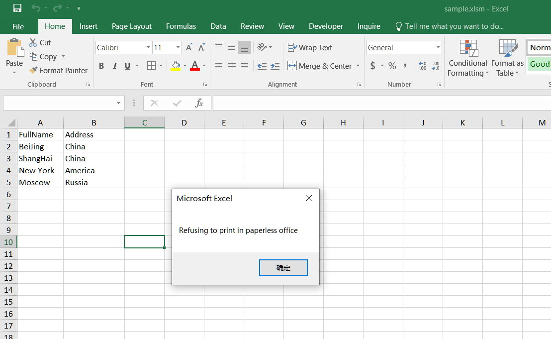 - حفظ ملف العينة إلى تنسيق xlsm.