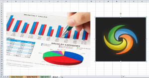 Le fichier modèle comporte trois feuilles, dont des graphiques et des images en tant que médias. La première feuille comporte des graphiques et la dernière une image, comme le montrent les captures d’écran ci-dessous.