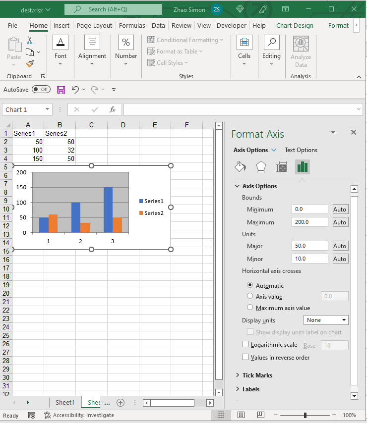 Aspose.Cells for Node.js via C++ ti consente anche di gestire gli assi del grafico a runtime. Con l’oggetto Axis, puoi modificare tutte le opzioni dell’asse come si fa in Excel.