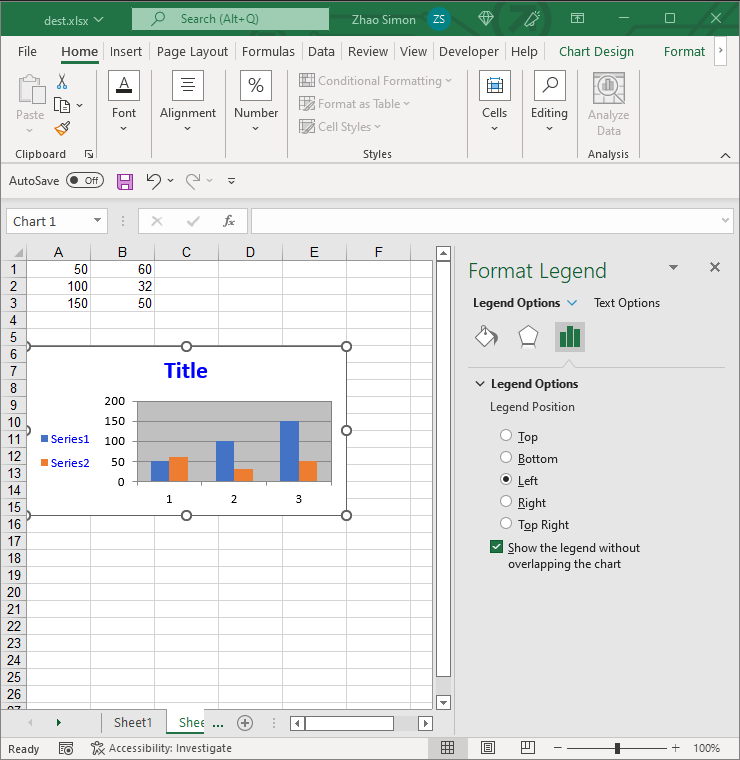 Aspose.Cells for Node.js via C++ consente anche di gestire la leggenda di un grafico in runtime. L’oggetto Legend può essere spostato, aggiornato e formattato.