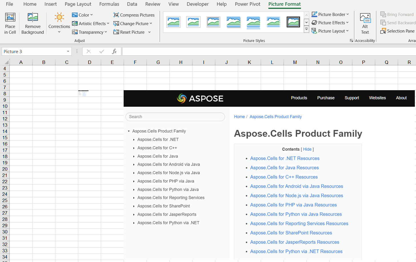 Aspose.Cellsを使用してセルに画像を挿入します。次のサンプルコードをご覧ください。例のコードを実行した後、画像がセルに挿入されます。