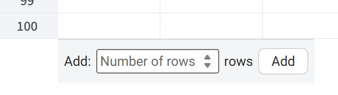 In edit mode, scroll near the bottom until the Row Appender appears, enter row count, then click Add.