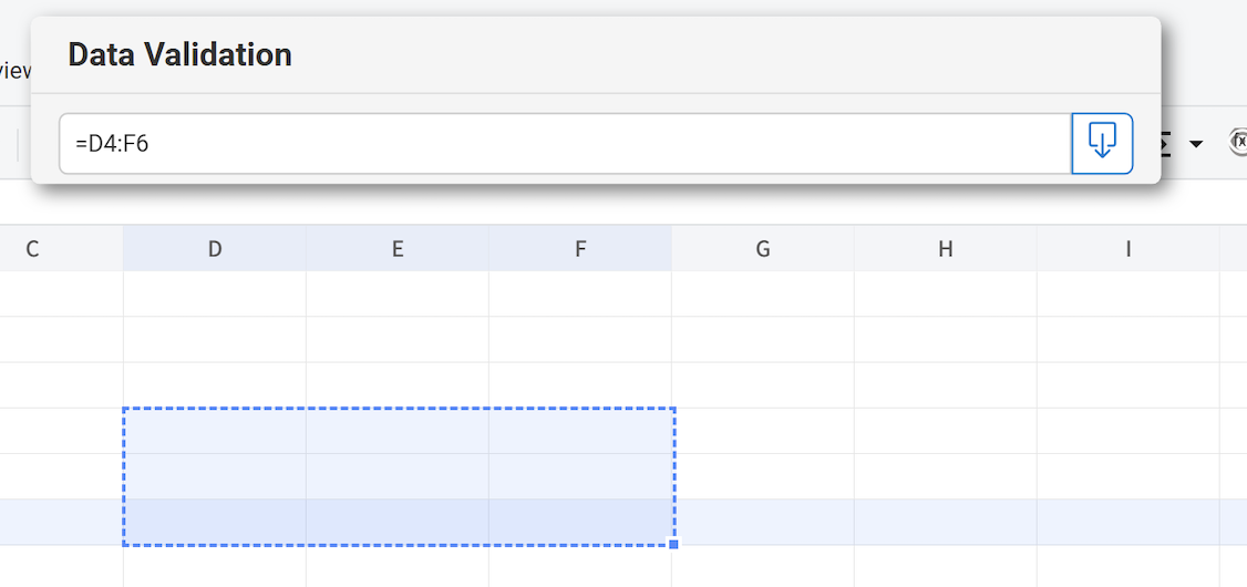 - Press Apply on any tab to commit the validation rule to the selected range.
