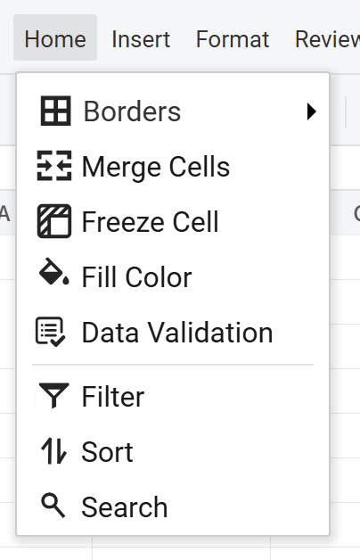 - The spreadsheet UI (sheet tabs, footer, context menu) is temporarily hidden and the background is masked.