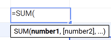 =in the cell editor or in the formula bar (for example,=SUM(A1:A3)).