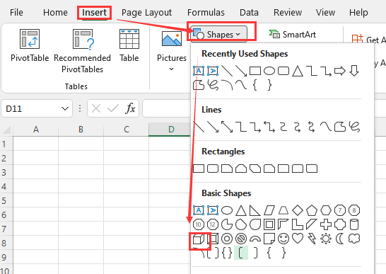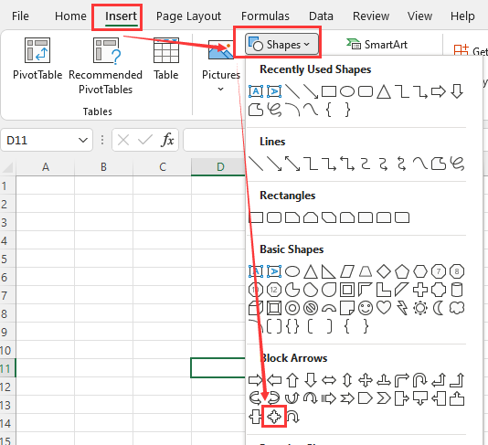 Вы можете использовать следующий метод для вставки стрелки квадратного выноса на лист Excel.