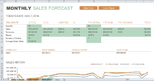 | Det första kalkylbladet (Försäljningsprognos) | Det andra kalkylbladet (Försäljningsrapport) |