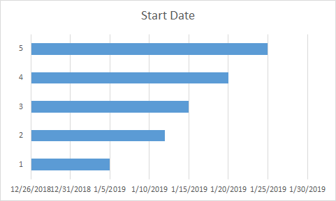 Formatere axeln för X-axeln, ställ in Minimum och Maximum (1/5/2019:43470, 1/30/2019:43494).