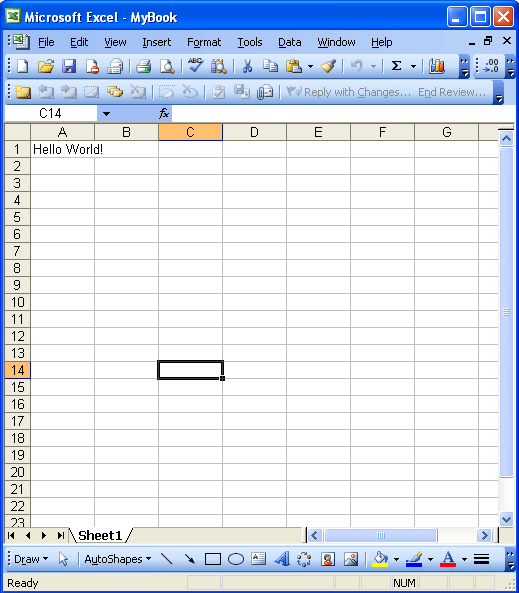 - Erişilen bir hücreye Merhaba Dünya! kelimesini ekleyin.