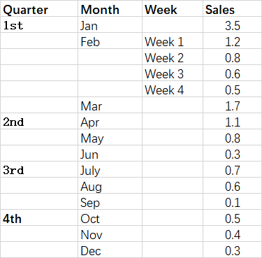 树状图适合比较层级中的比例,但树状图在显示最大类别与每个数据点之间的层次级别方面并不理想。环形图是显示层级数据的更佳直观图表。环形图理想用于显示层级数据。每个层级由一个环或圆圈表示,最内圈代表层级的顶部。没有任何层级数据(仅一层类别)的环形图看起来类似于甜甜圈图。而具有多个层级的环形图则展示了外部环与内部环的关系。环形图在展示某一环被拆分成贡献部分方面最为有效,而另一类层级图形——树状图,更适合比较相对大小。