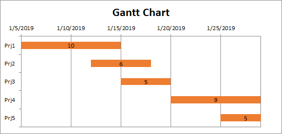 请查看以下示例代码。它加载包含一些示例数据的示例Excel文件,然后基于初始数据创建堆积柱状图,并设置相关属性。最后将工作簿保存为输出XLSX。下方截图显示了由Aspose.Cells在输出Excel文件中创建的甘特图。