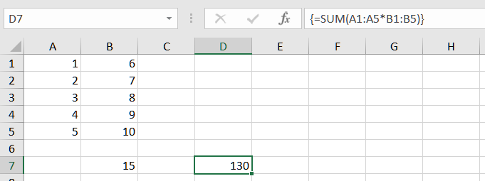 对范围中的值求和:{=SUM(A1:A5*B1:B5)}