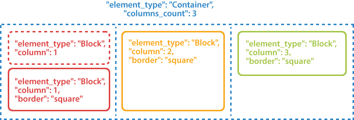 | column | integer | 1 | The number of the column in which the Block will be placed. This number must not exceed the number of columns of the parent Container element. |