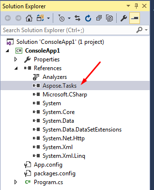 이제 Aspose.Tasks가 귀하의 신청서에 성공적으로 추가되고 참조되었음을 알 수 있습니다.